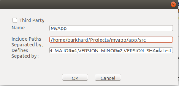 /path/to/myapp/app/srcfor the Include Paths. Preprocessing the application-specific Defines yields