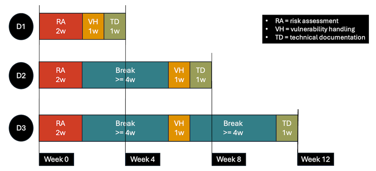 - a plan for implementing security measures and a vulnerability handling process (including effort estimates),