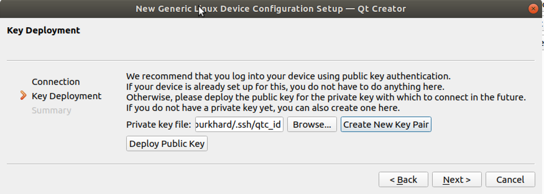 $ ~/Qt/Qt5.14.0/Tools/QtCreator/bin/qtcreator &Accessing the Target Device via SSH