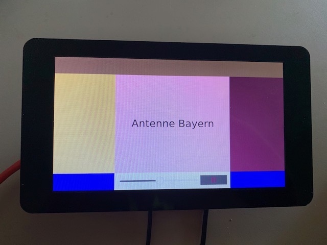 QtCreator takes the first kit in the list, the Desktop kit, as the current kit. If we hit Ctrl+R, QtCreator will build and run the radio application for the Desktop. The radio application starts play the station Antenne Bayern.